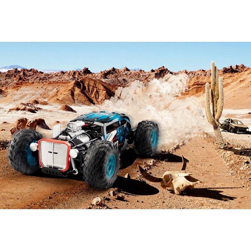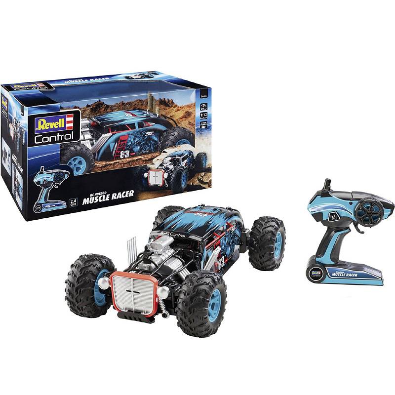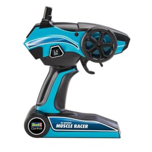 Revell Control Muscle Racer to pierwszy samochód zdalnie sterowany, który w mgnieniu oka osiąga zawrotną prędkość 20 km/h. Muscle Racer ma długość ponad 39 cm i może, dzięki napędowi na cztery koła i mocnemu akumulatorowi, prezentować swoje umiejętności na drodze nawet przez 20 minut. Chcesz jeździć? Nie ma problemu! Razem ze znajomymi możecie doświadczyć radości z jazdy kilkoma zdalnie sterowanymi pojazdami jednocześnie, ponieważ dołączony pilot 2,4 GHz nie koliduje z innymi zdalnie sterowanymi samochodami. Dzięki temu możecie wspólnie bawić się naprawdę szybkimi wyścigami.